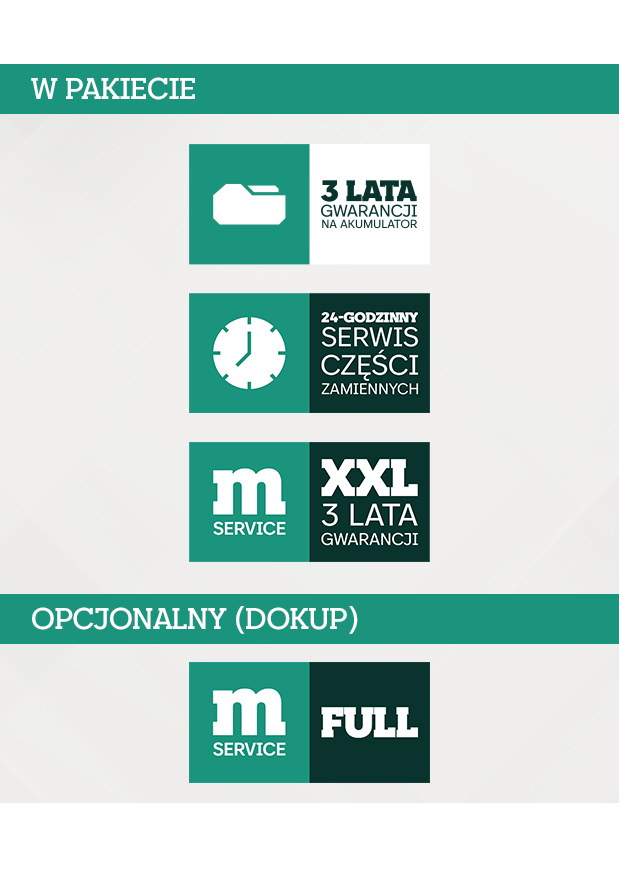 • Naprawy gwarancyjne także elementów zużytych